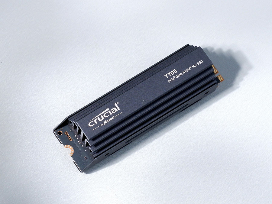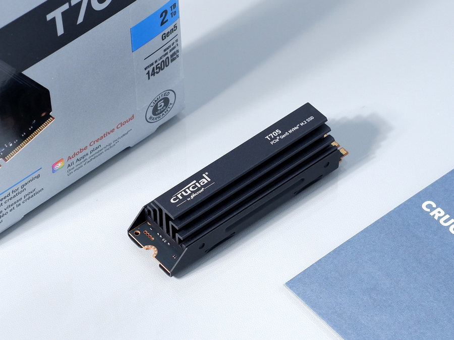 Crucial 英睿达 T705 PCIe 5.0 NVMe 固态硬盘还提供有非散热版本。根据笔者此次测试的结果来看,这款固态硬盘的非散热版本必须加装散热器使用。
