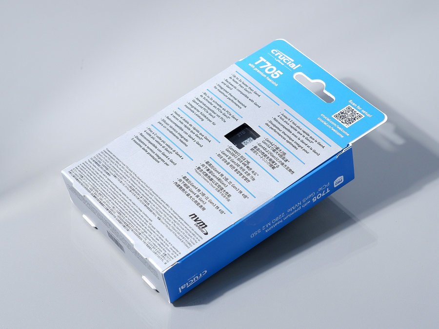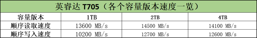 Crucial 英睿达 T705 PCIe 5.0 NVMe 固态硬盘同样提供有1TB、2TB、4TB三种容量版本。注意每种容量版本在速度方面是有区别的,其中2TB版本是三种容量版本当中速度最快的。此次评测,笔者选用的就是2TB容量的散热版本。