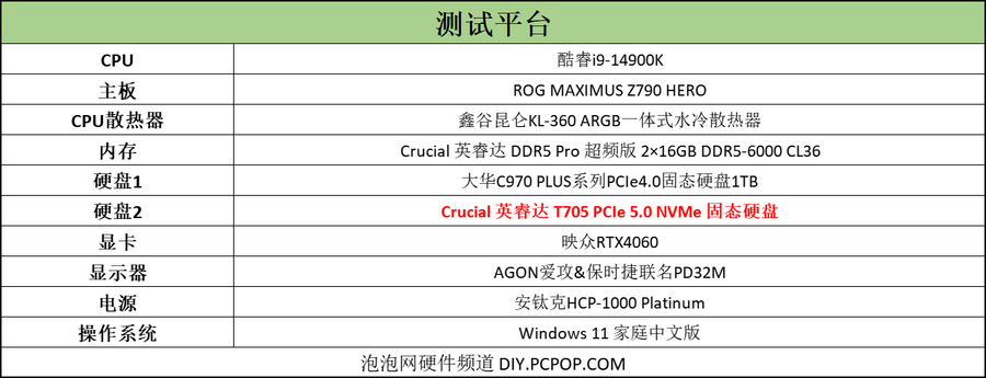 接下来,笔者组建了一套酷睿14代台式机平台,将对Crucial 英睿达 T705 PCIe 5.0 NVMe 固态硬盘2TB进行上机实测。
