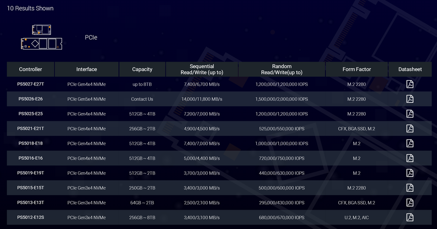 目前群联官方网站上面仅提供了老款PS5026-E26-52主控芯片的产品介绍,并未提供升级版PS5026-E26-52主控芯片的产品信息。