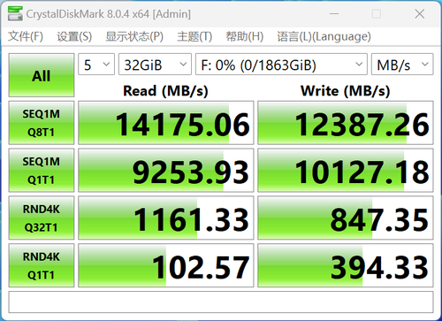 Crucial 英睿达 T705 PCIe 5.0 NVMe 固态硬盘2TB的连续读取性能超过了14100 MB/s,连续写入性能超过了12300 MB/s,表现非常出色。