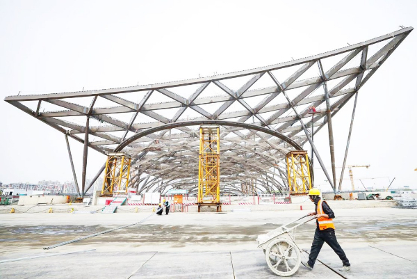 截至一季度末,铁路主站房区土方施工接近完工,“京帆”屋盖钢结构施工已完成两片,第3、4片钢结构屋盖施工正在有序建设。