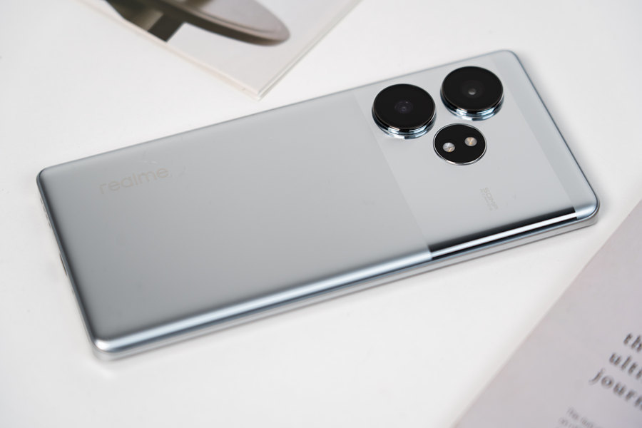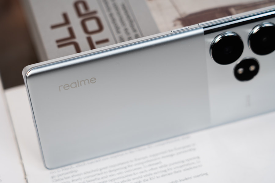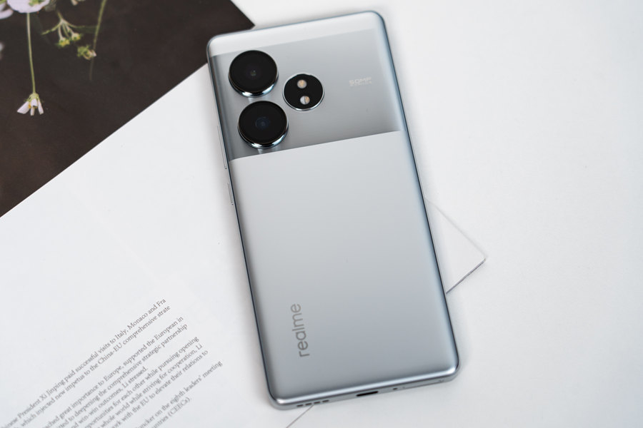 我们这次拿到的是它的主打配色“流银骑士”。银色机身放在手机圈里算得上一个激进、冒险的选择,好在真我拿捏得不错,从后壳到中框通体银色,整体性更强,后摄Deco区域延续了此前的贯穿式设计,但不再凸起,有着镜面金属质感。