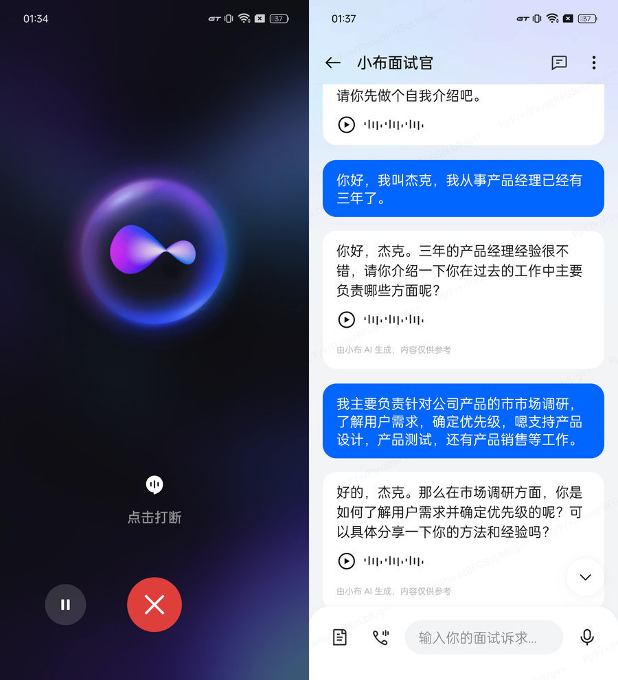 而且小布助手还支持AI语音对话,和Chat GPT很像,基于此功能还带来了英语口语练习、AI面试等新奇体验。