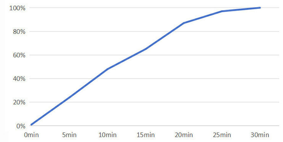 在续航方面,真我GT Neo6 SE搭载了5500mAh大电池,容量上的优势配合屏幕的8T LTPO技术对功耗的节省,使它有着更持久的续航表现。模拟日常使用5小时,包括看视频、拍照、音乐播放、刷微博等多个场景,剩余电量61%。如果你不是重度用户,白天上班上课基本可以告别充电器和充电宝了。它还支持100W快充,实测11分钟就可以充入50%电量,充满用时30分钟。