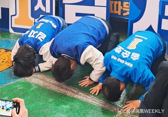 为了打动选民,共同民主党人甚至以下跪姿态拉拢选民。距离投票一周时,李在明前往昌原市城山区帮助当地议员候选人拉票,他将矛头指向尹锡悦政府,“我们需要向他们表明,如果我们这样管理国家,我们可能会被赶出去”。竞选集会结束后,他与当地两位候选人跪拜表达感谢。