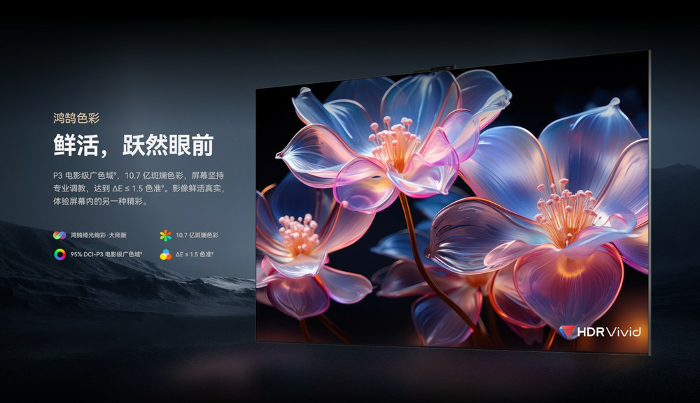 鸿鹄900旗舰芯片具备8个性能大核CPU,6核GPU支持极速渲染,带来超凡画质。新品支持8K 120fps的强悍解码,4T超强算力接入鸿鹄大模型,让画质体验达到新高度。