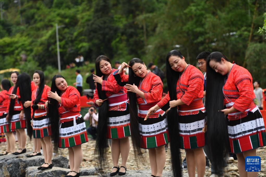 当日是农历三月初三,广西桂林市龙胜各族自治县黄洛瑶寨举行一年一度的红瑶“长发节”。红瑶“长发节”是黄洛瑶寨欢庆“三月三”的传统项目。