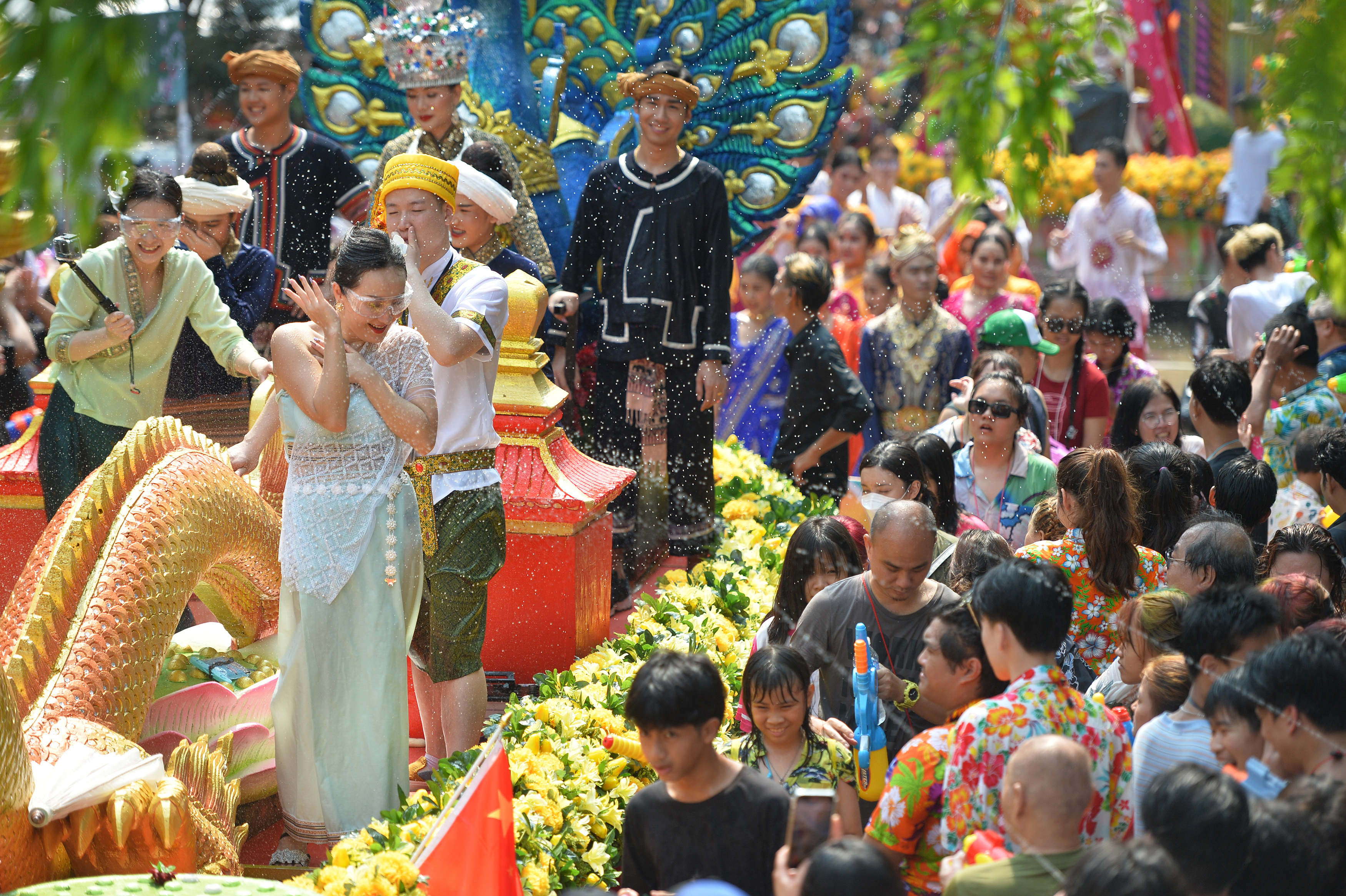 这一区域的人们同依一条河,共饮一江水。河水不仅孕育了欣欣向荣的农耕文明,也孕育出许多与水相关的节日,其中最为隆重的,当属泼水节。无论是傣、佤、阿昌、布朗、德昂等中国少数民族,还是缅老泰柬越等中南半岛国家,都会在每年4月中旬喜迎泼水节,泼水节其实就是他们的佛历新年。