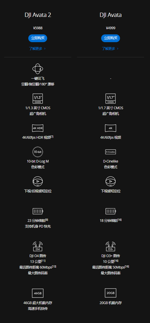 至于售价方面,DJI AVATA 2 官方提供了单机、单电池套装和三电池套装三个不同方案,售价分别是 2988、5988 和 6988 元。