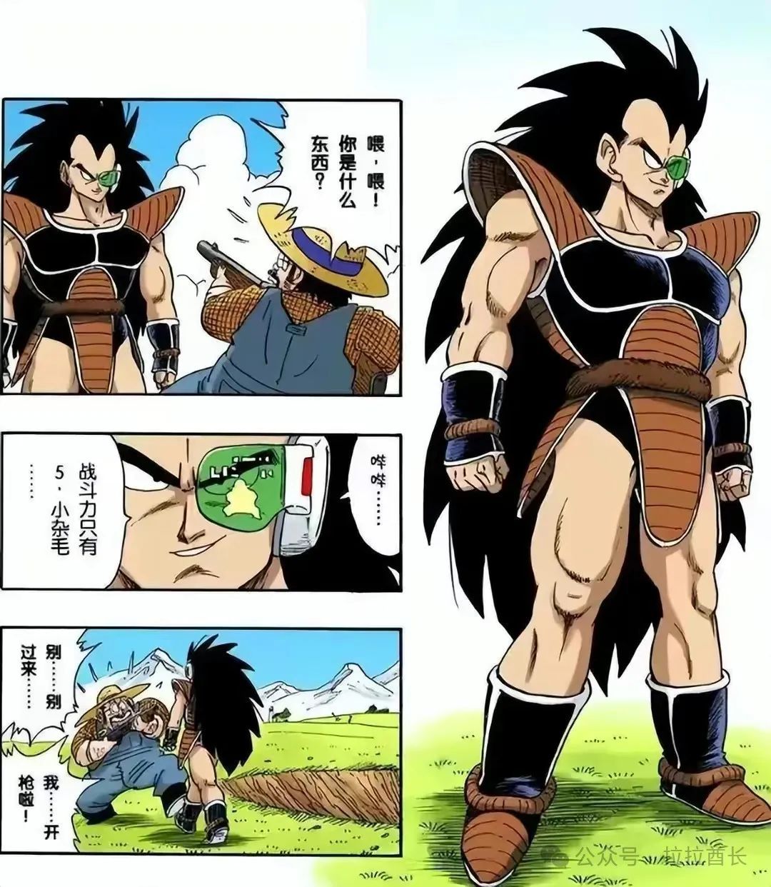 5、拉蒂兹:做为主角孙悟空的哥哥,却非常的卑鄙无耻,为了胁迫孙悟空加入贝吉塔的战斗小分队,绑架了孙悟饭,最终被孙悟空给抱着,一起领受了比克大魔王的一记“魔贯光炮”而领了盒饭。