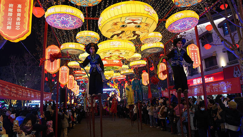 在另一处国家4A级景区——印象济南·泉世界,过年的锣鼓声自大年初一至初八,一直响彻园区。每逢有舞龙、高跷表演,数以千计的热情游客便从四面八方涌入。“曲终”人“不散”,相声曲艺、舞台剧、音乐会轮番上演,带给游客现代与传统碰撞的新奇体验。