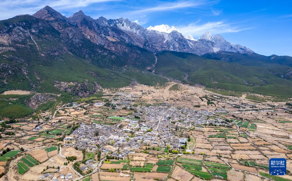 这是3月25日拍摄的玉龙雪山脚下的玉湖村一景(无人机照片)。