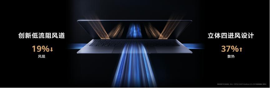 为确保能够持久、畅快地释放性能,华为MateBook X Pro采用了全新的鲨鱼鳍散热系统。该散热系统由华为2012实验室、横滨研究所、基辅研究所联合研制,在建模设计、场景仿真、材料工艺以及数学算法等多个方面实现全面突破,相较前代产品整体散热能力升了37%。