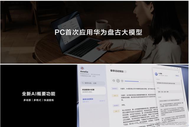 同时,华为MateBook X Pro的智慧体验再升级,全场景Al深度赋能华为智慧PC,首次应用华为盘古大模型,AI概要功能可快速、准确地从文字、音频、视频内容中提取关键信息,能帮助用户在海量信息中快速精准地筛选出对自己有价值的内容,从而帮助用户更高效地掌握会议要点。