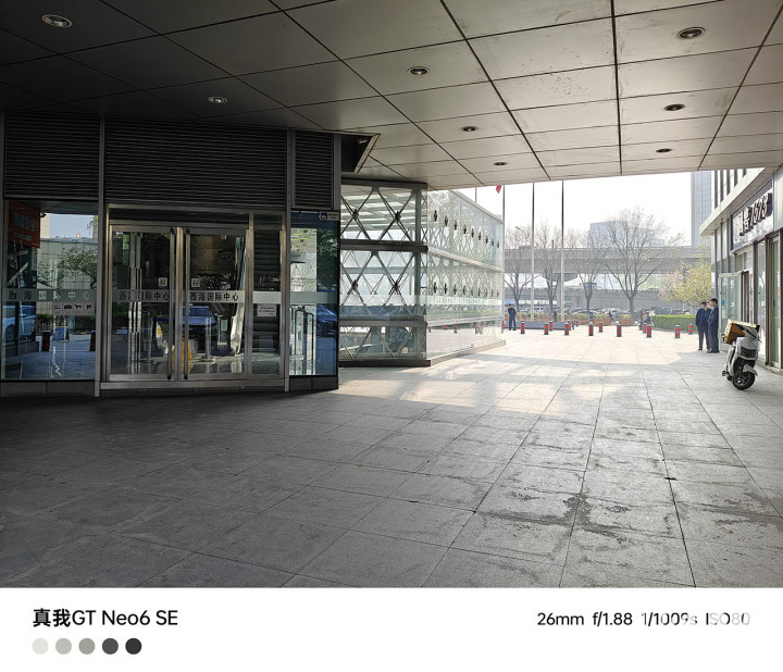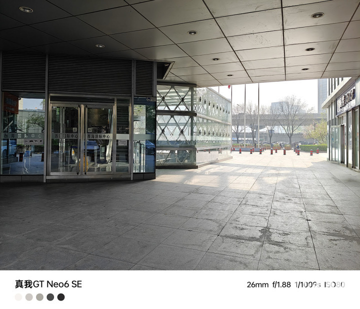 在较为复杂的光线环境中,真我GT Neo6 SE明暗细节丰富,高光部分不过曝,呈现出高动态效果。暗部区域的建筑表面纹理充分保留,画面也有不错的明暗反差效果,很有真实感。