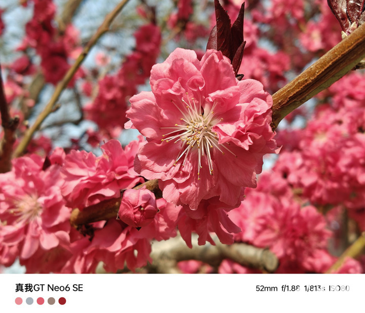 从样张上来看,真我GT Neo6 SE拍照清晰度高,随手拍照的花蕊清晰不糊,具备一定的变焦能力,在1X和2X之间可以随意切换进行构图。在拍照中,微风环境是会导致花枝轻微晃动的,因而在抓拍效果上也很让人满意。