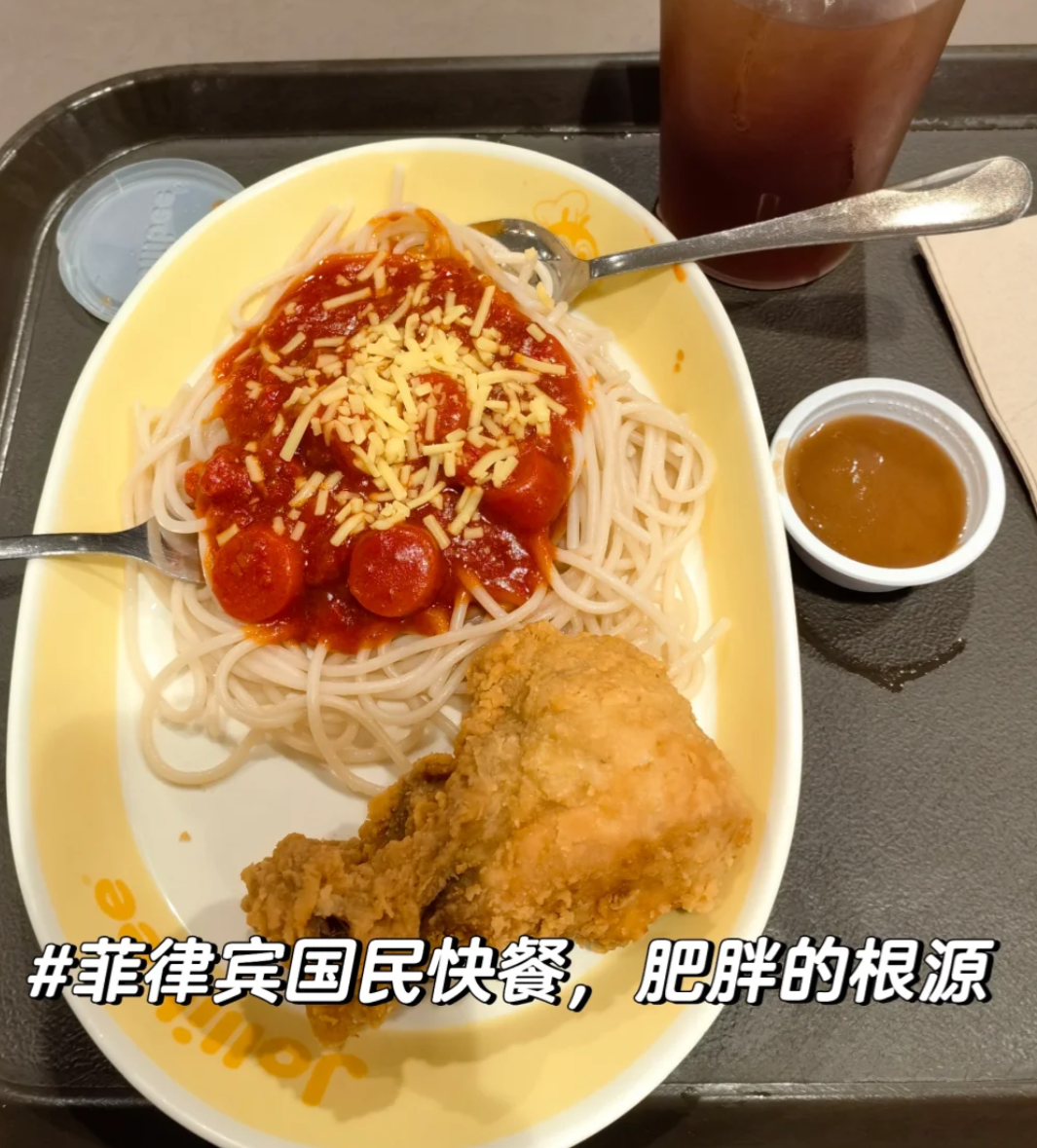 7️⃣ 菲律宾人的饮食习惯很不健康。东南亚普遍对吃还是挺讲究的,做饭喜欢放各种香料。但菲律宾受到美国影响喜欢吃快餐,普遍是高糖分和重油食品,号称“国民快餐”的快乐蜂也是以买炸鸡+米饭为主。而本土菲律宾菜也炒得特别甜。