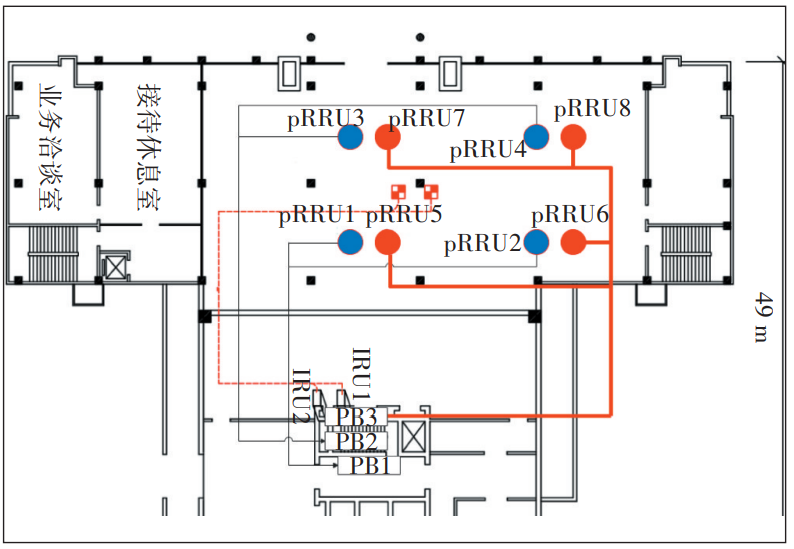 a)结合现场环境,保证各pRRU之间以及pRRU到测试区域,可视无阻挡。