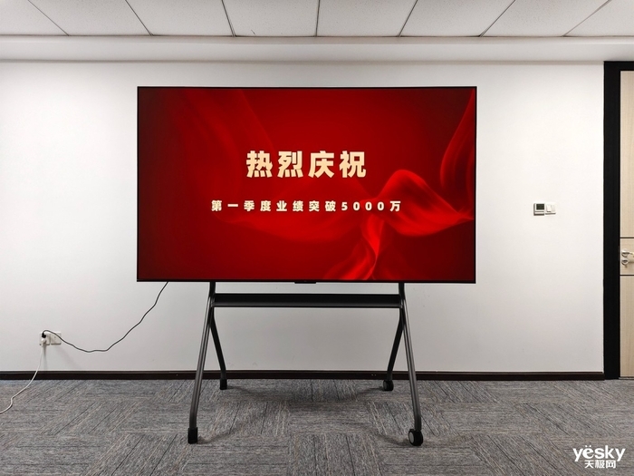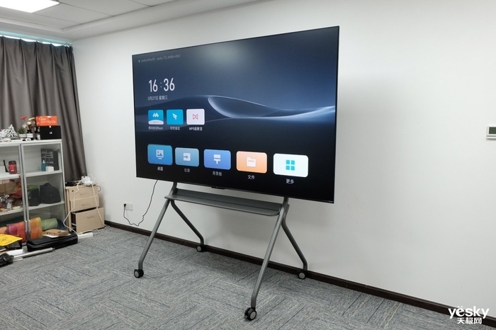 98吋的办公智屏相当大,尤如一块黑板,适合在大型会议厅中使用。安装好后高约209cm(高度可调节),一般门的高度能进出。