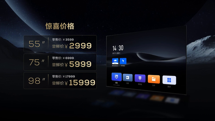 价格方面,TCL办公智屏55吋M55A新上市优惠价仅2999元,75吋M75A上市优惠价仅5999元,98吋的M98A上市优惠价15999元,几乎跟普通智能电视一样,再加上标配的4K投屏器、翻页笔、会议遥控器,可以说很实惠,企业采购可以节省不少成本。同尺寸的交互式会议平板价格高昂,动辙上十万元,TCL办公智屏的价格与之相比无疑极大降低。这一是由于去除了屏幕触控交互,二则由于TCL华星自家屏幕,供应链上有相对低的成本。