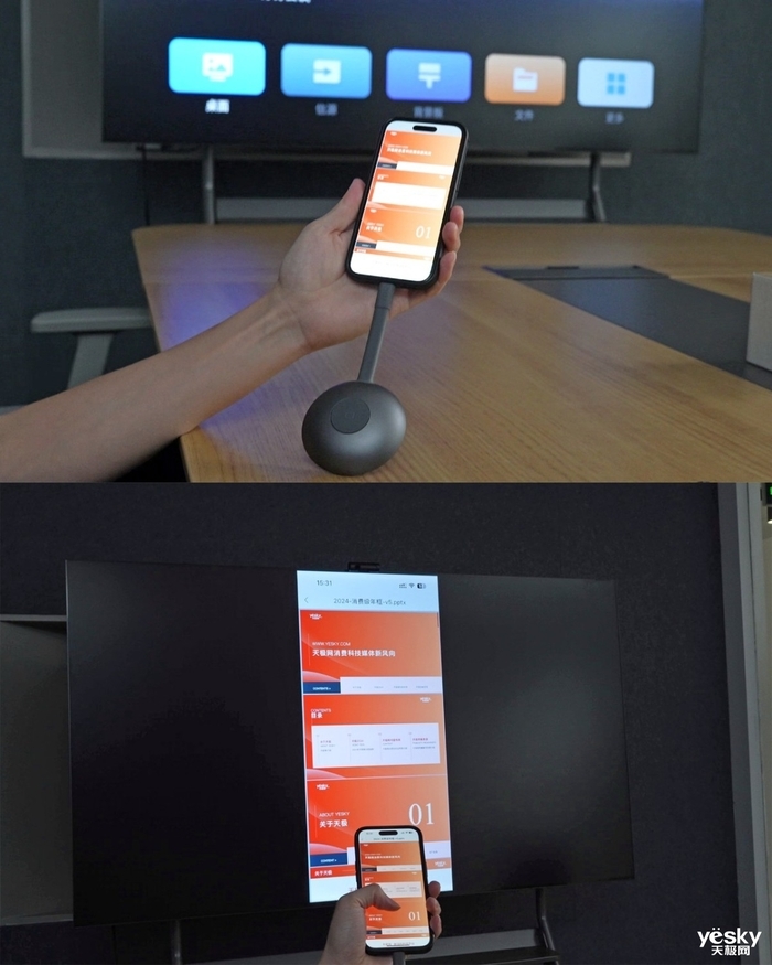 投屏器也可直插到手机上进行投屏(手机需支持Typc画面输出),从我们体验看,苹果手机的兼容性更好点。