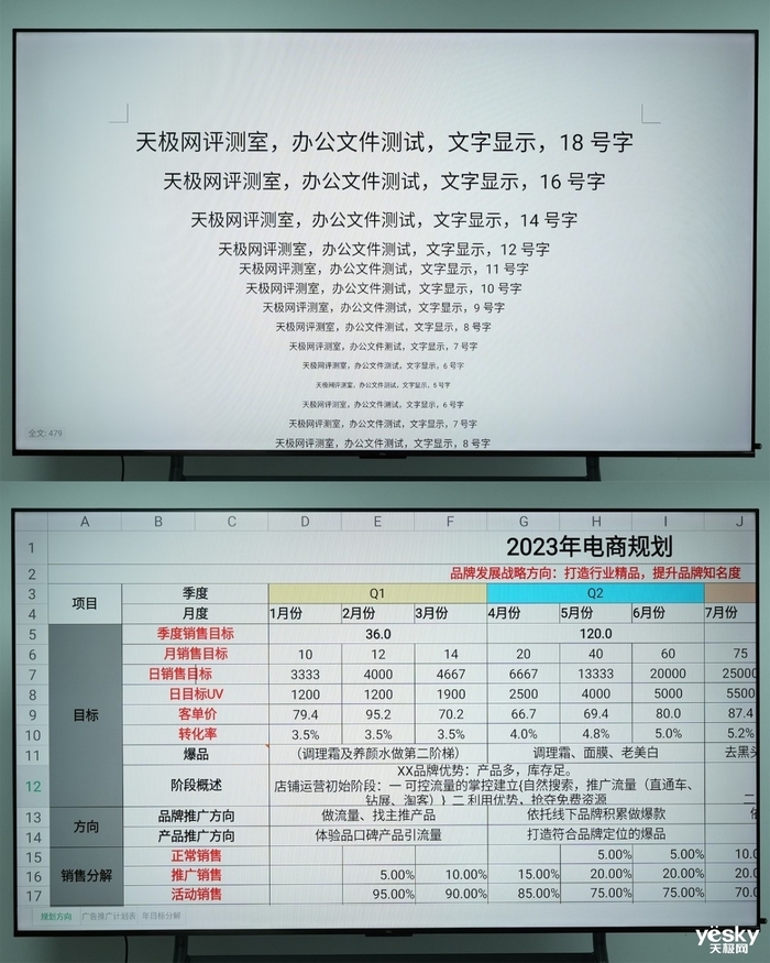 我们播放了PPT、WORD文件,文字的显示清晰锐利,大面积的白色会稍微暖色调,这也就是TCL办公智屏未来纸技术的“类纸效果”。