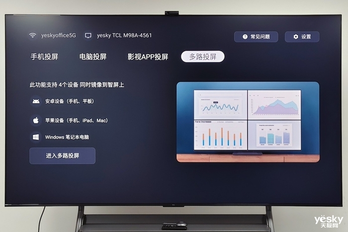 除了使用投屏器,TCL办公智屏当然也支持软件无线投屏,同样可支持手机、电脑、影视APP、多设备投屏。