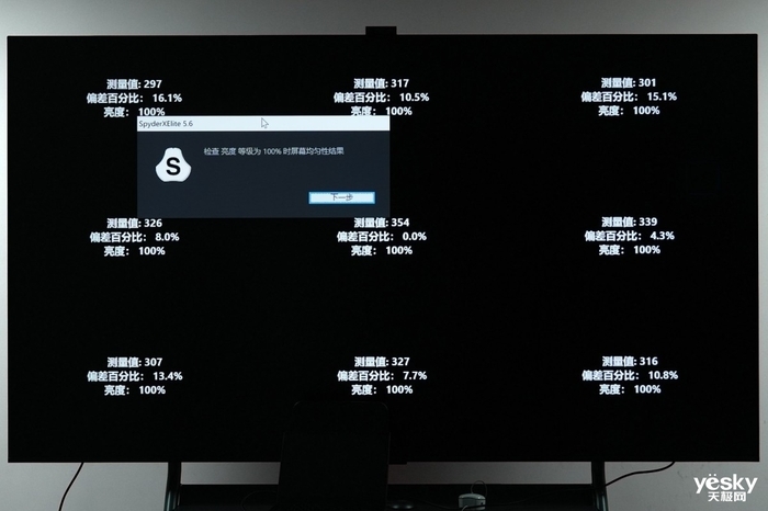 我们使用专业色彩测试仪红蜘蛛5,亮度均匀性测试结果显示,TCL办公智屏M98A在100%亮度时,其亮度均匀性偏差百分比最高在16.1%以下,整体差异不大,普通液晶电视或显示器偏差会达到20%-30%左右。