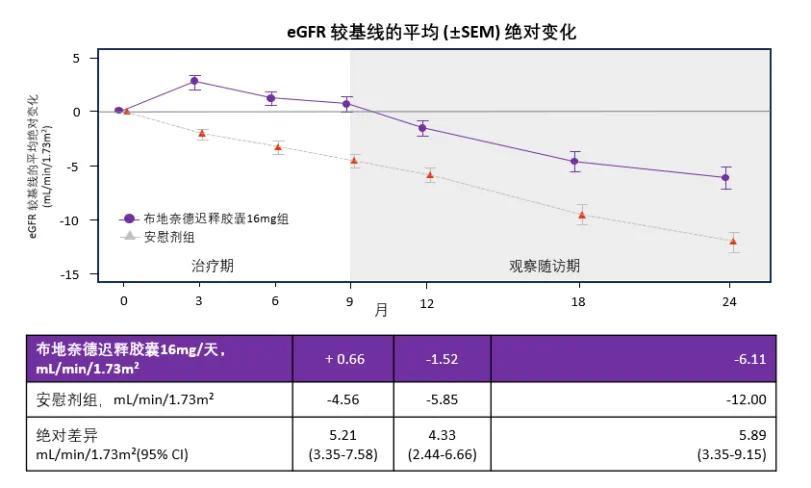 布地奈德肠溶胶囊在2年研究期间,患者们的肾小球滤过率下降速度明显减慢!比安慰剂组,布地奈德肠溶胶囊组肾小球滤过率平均高出5.05 ml/(min·1.73 m2),并且,停药后效果还是非常不错。在治疗9个月之后即使观察至停药15个月,肾功能获益仍然存在。