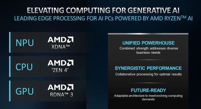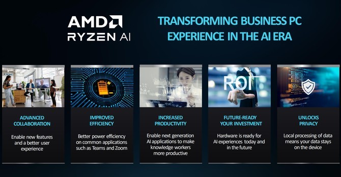 值得一提的是,AMD Ryzen AI能够为客户在PC层面带来业务的重要提升和转型,首先是更先进的协同工作,其次是提升能效的同时还可降低能耗,此外是生产率的进一步提高以及未来就绪的技术投资,当然还有用户的隐私,Ryzen AI 技术可以让用户在本地的机器上就能实现数据的处理,尤其是AI PC时代,对于数据的隐私性非常关注的用户,更为重要。