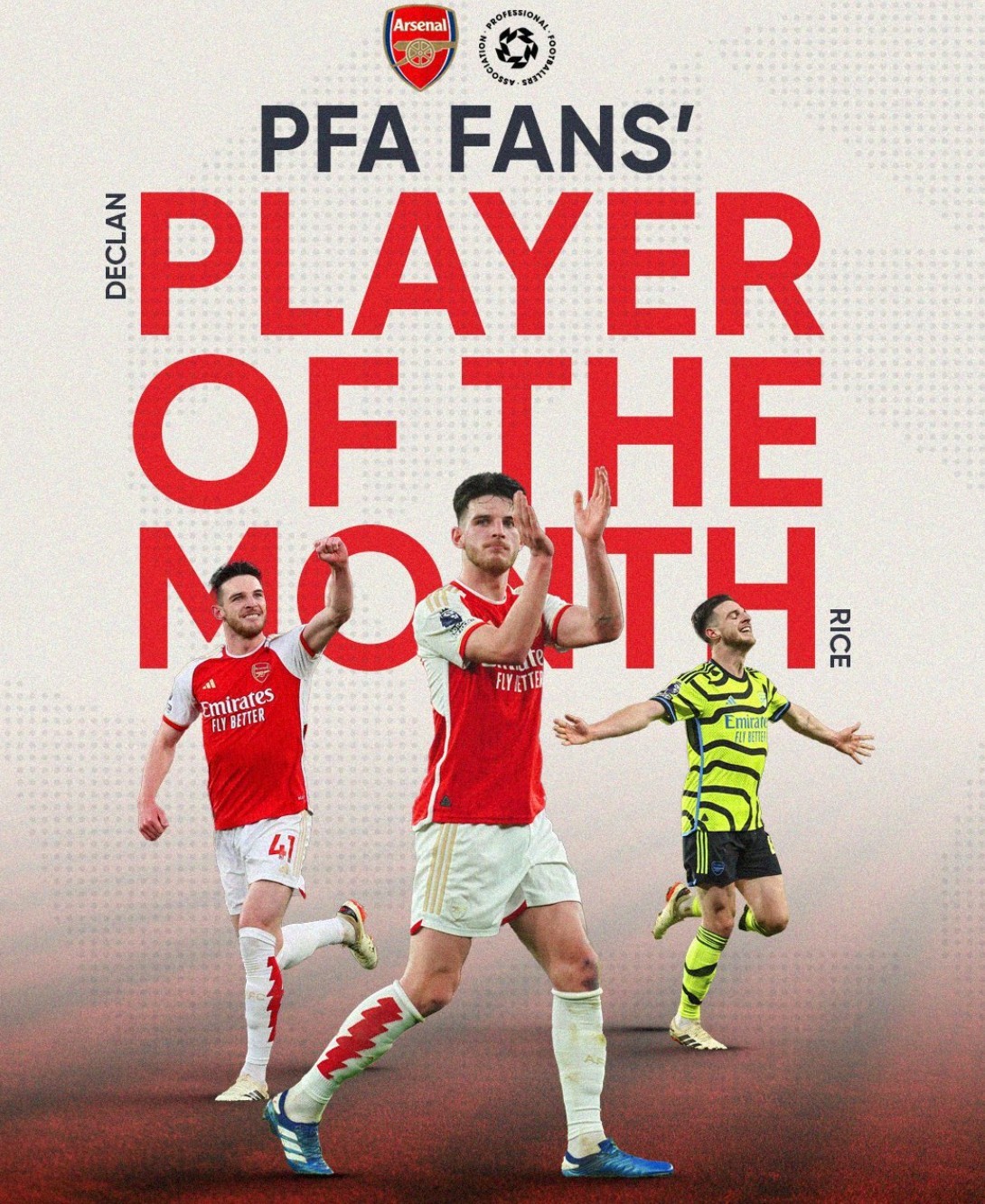 在3月份,赖斯在英超出战了3场比赛,打进2粒进球。他击败了帕尔默、罗德里、麦卡利斯特等其他候选人,获得了最多球迷投票,成功当选PFA3月最佳球员。