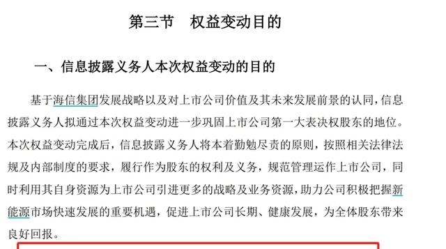 当时,海信网能已经获得了上市公司10.07%的股权、19.64%的表决权,并还将以集中竞价方式购买上市公司0.36%股份。其还在公告中明确,本次权益变动的最终目的是取得上市公司控制权。