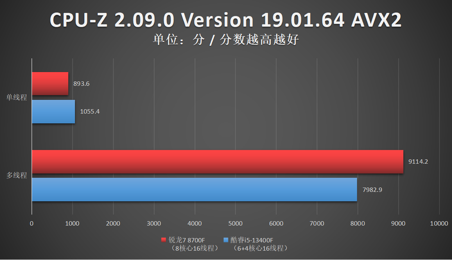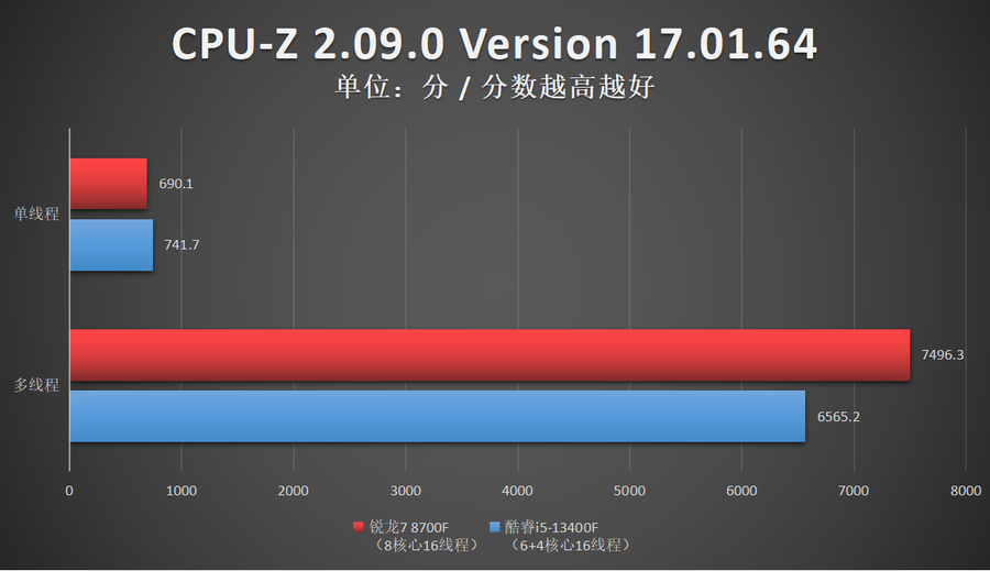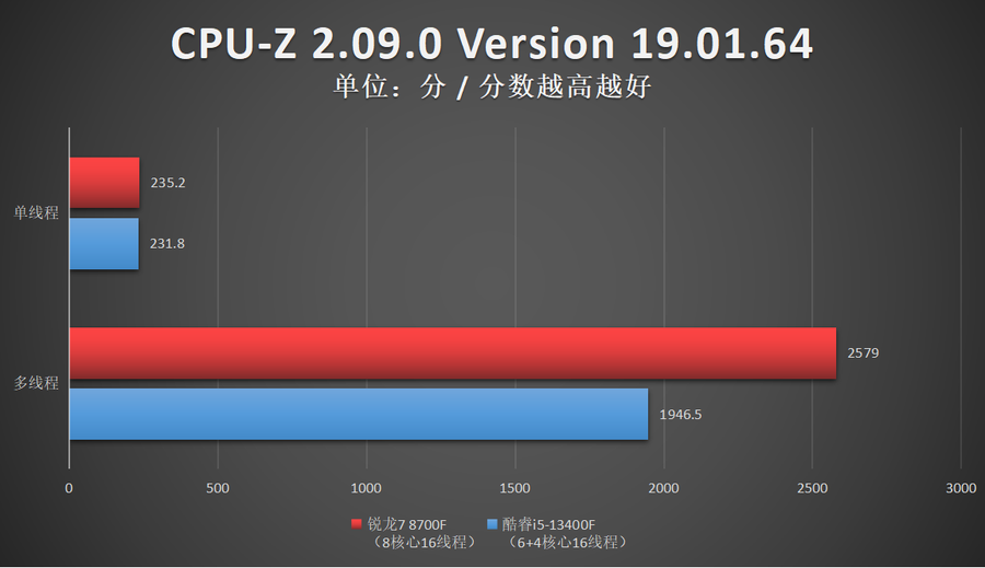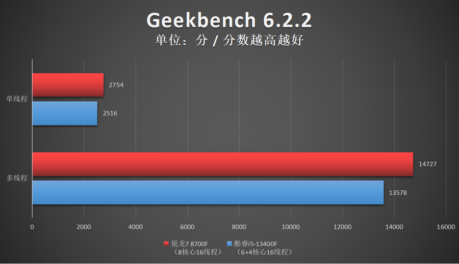 此次首发评测,除了测试锐龙7 8700F处理器的性能表现之外,笔者还加入了竞品酷睿i5-13400F的成绩,以作对比。