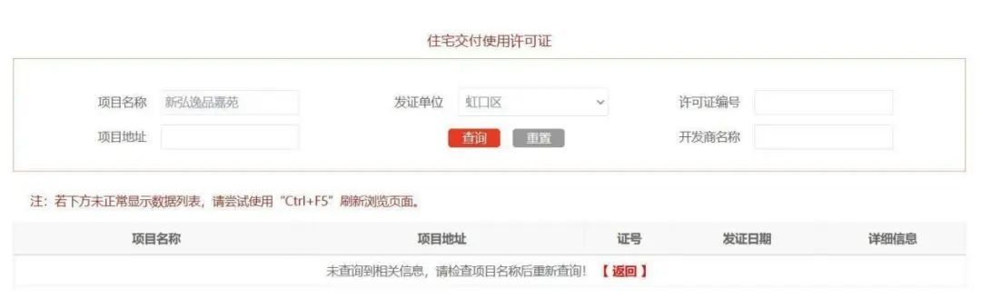 令人匪夷所思的是,虽然弘久新弘北外滩已经交付,但是小凤凰并未在上海市房屋管理局官网上查询到该项目的住宅交付使用许可证。