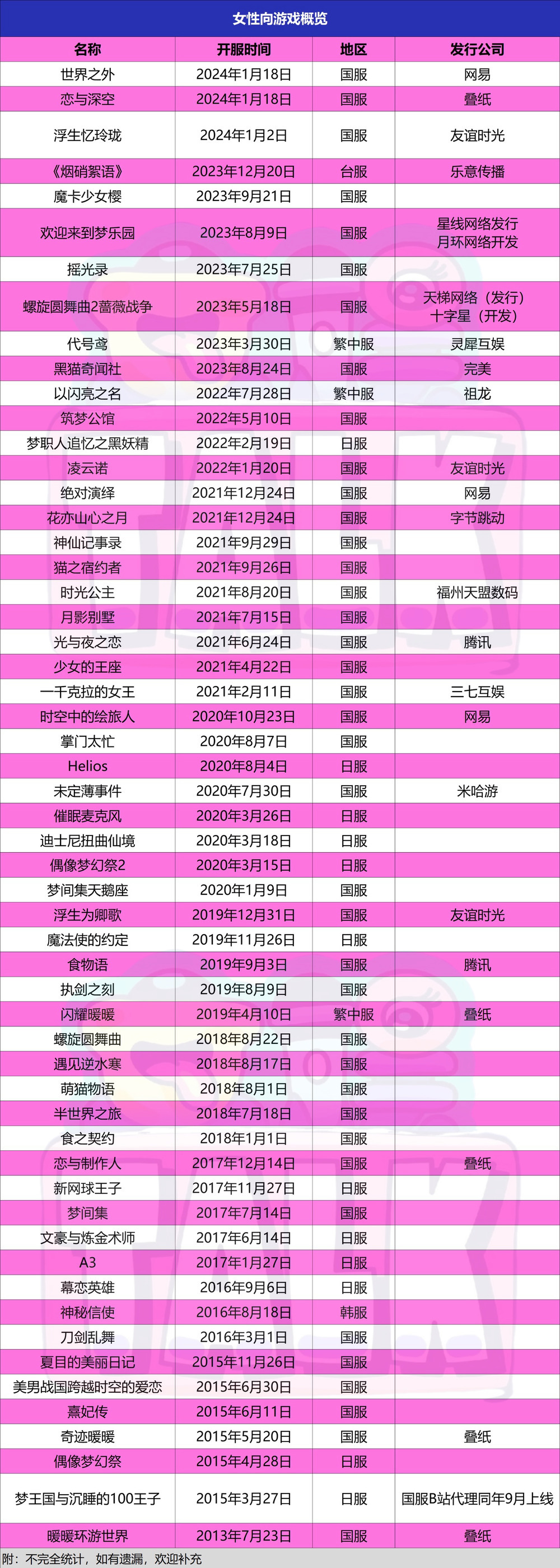 除了乙游,女性向游戏一直都在朝着题材细分的赛道上做出更多创新。