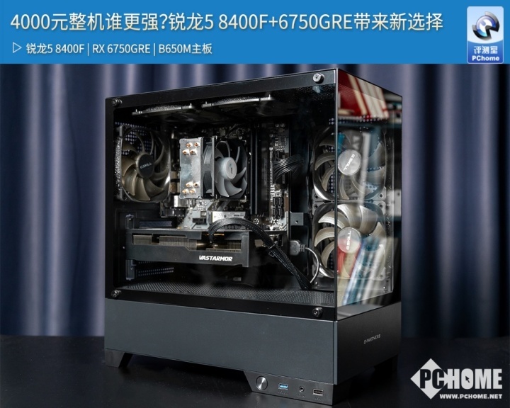 而最近,AMD推出了全新的锐龙5 8400F处理器,采用了TSMC 4nm FinFET工艺制程,为Zen 4架构的桌面端产品带来新选择,特别是其同样采用6核心12线程设计,拥有高达4.7GHz的最高频率,22MB大缓存和65W的功耗设计,让其成为不少整机厂商在4000元价位段左右组建游戏主机的新选择,结合AM5平台的持久升级潜力和AMD强悍的RX 6750 GRE 10GB显卡,在入门游戏主机当中带来了更优秀的使用体验。今天的PChome评测室,我们就来对比当下4000元左右游戏整机配置到底哪家更强。