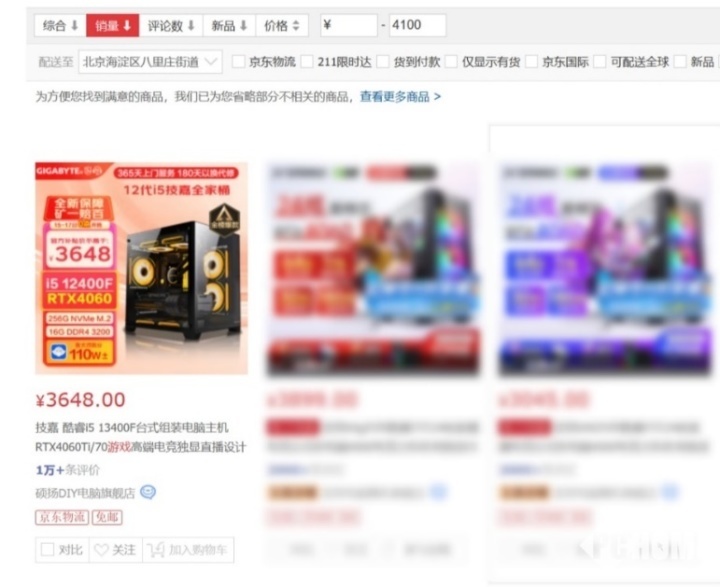 但目前游戏整机市场上,玩家们在低价位段的靠谱选择并不多。我们在某电商平台搜索游戏整机,并且将价格设定为4100元以下,按照销量排序后,第一名的配置可以说是相当眼熟,也是这两年玩家选择颇多的i5-12400F+RTX 4060的组合,性能不弱的全大核CPU搭载最新一代的甜品级游戏显卡,基本上足以在1080P画质下畅玩全部大作了,还可以稍微兼顾轻度的生产力工作,可以说是目前4000元左右极具代表性的整机配置。