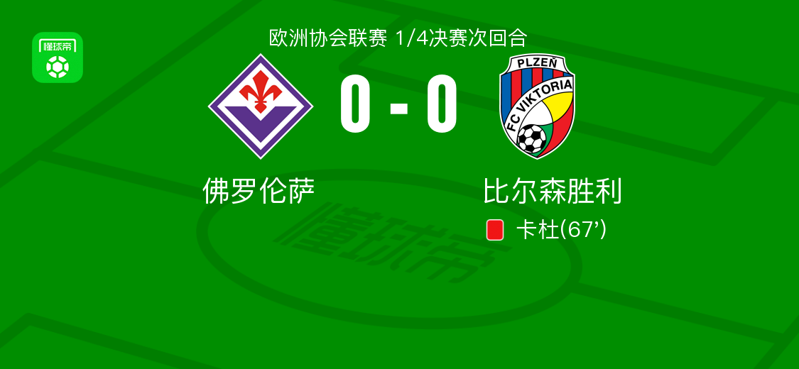 北京时间4月19日欧洲协会联赛 1/4决赛次回合,佛罗伦萨主场对阵比尔森胜利。最终比分佛罗伦萨 0-0 比尔森胜利。两回合总比分佛罗伦萨0-0比尔森胜利。