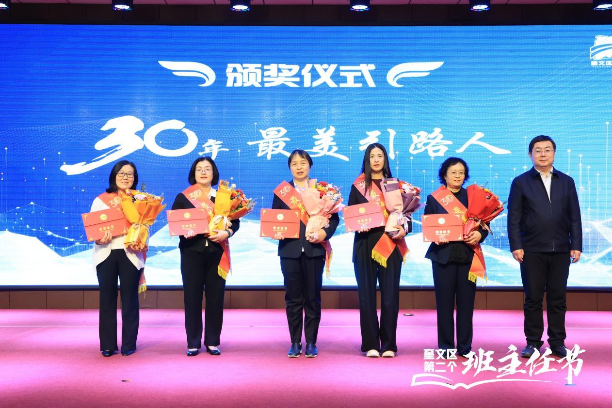 与会领导嘉宾为从事班主任工作20年以上的教师代表、从事班主任工作30年的教师以及功勋班主任代表颁发荣誉证书。