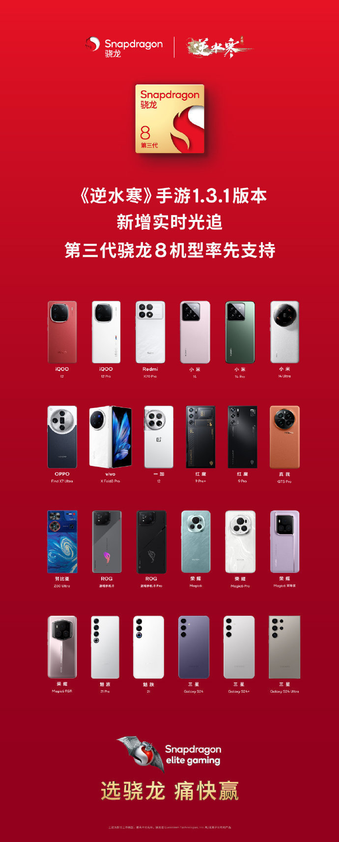3月22日,《逆水寒》手游1.3.1版本中上线实时光追功能,Android玩家可以通过搭载第二代骁龙8以及第三代骁龙8旗舰移动平台的手机,率先体验到实时光追带来的更具沉浸感的光影体验。