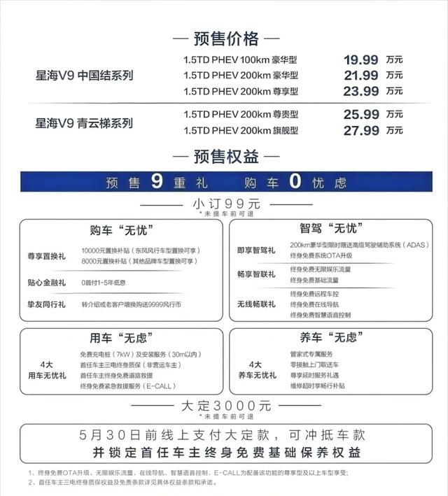 4月18日,东风风行在京发布新能源星海序列,宣布首车中大型插混MPV星海V9开启预售,价格区间19.99-27.99万元,共提供2个序列5个版本。