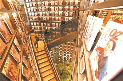 茑屋书店不仅有丰富的图书选品,这里的文具用品和精致的生活用品也非常吸引人。穿过一楼的茑屋咖啡,步入连接至二楼挑空区域的楼梯,就来到了国内TSUTAYABOOKSTORE所有门店中规模最大的杂志区,在这儿能够找到来自世界各地的杂志,接触到最新的潮流文化。