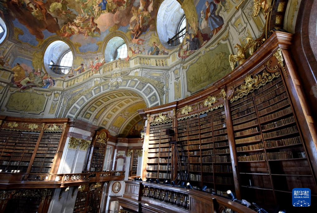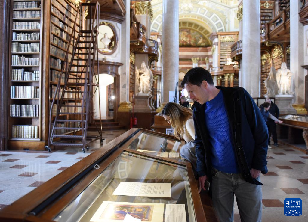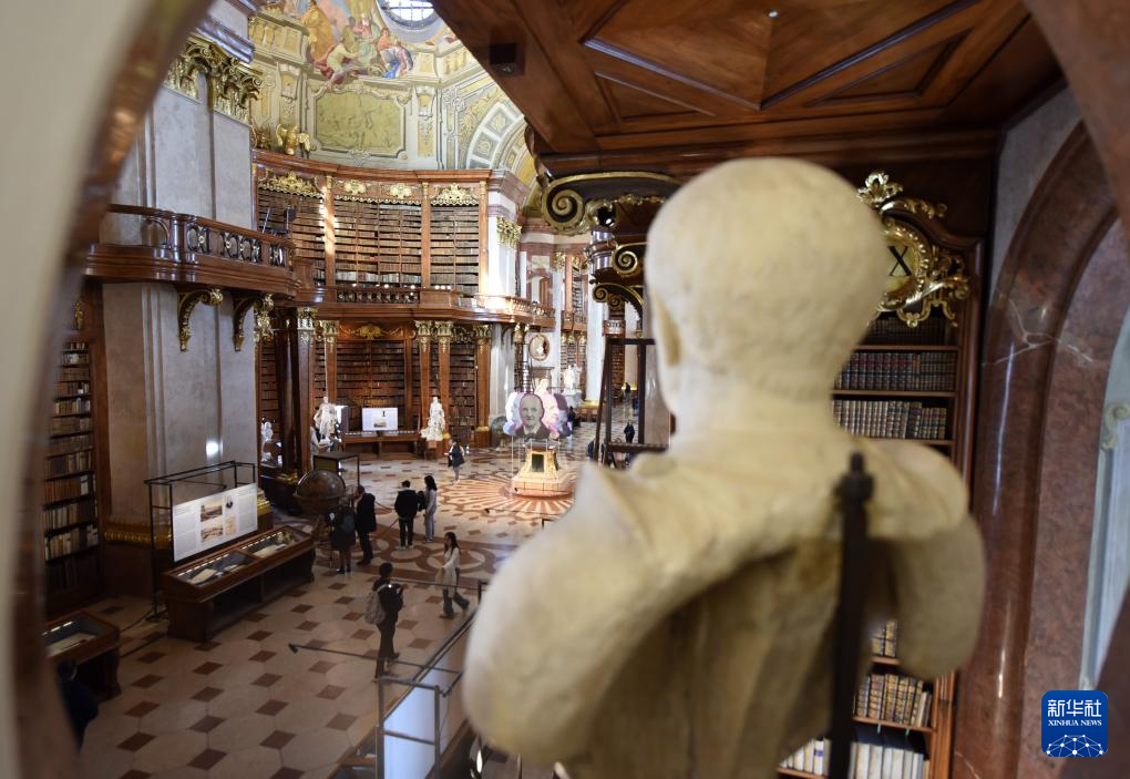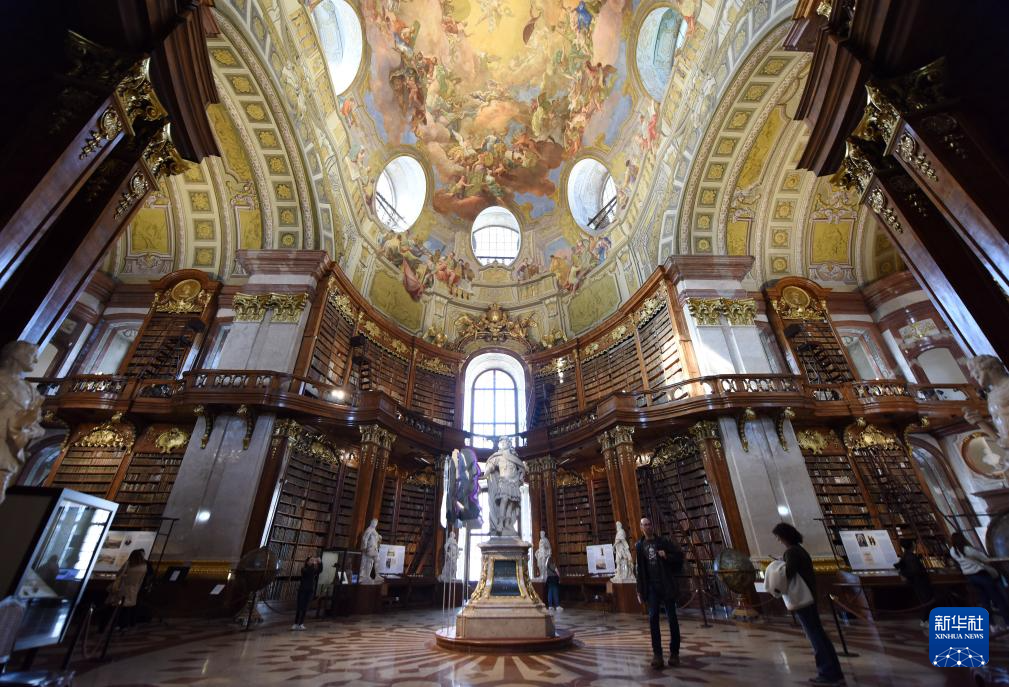4月19日,游客在奥地利国家图书馆普隆克厅参观。