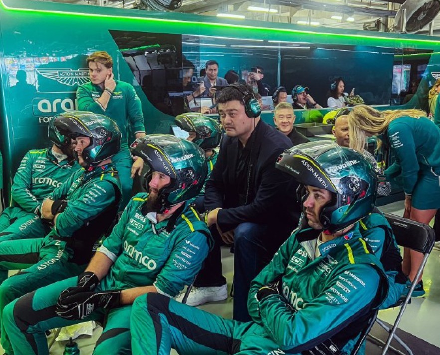 北京时间4月21日,2024年F1中国站正赛打响。中国篮协主席姚明来到现场观赛,并在阿斯顿马丁车队的P房观看了正赛整场比赛。
