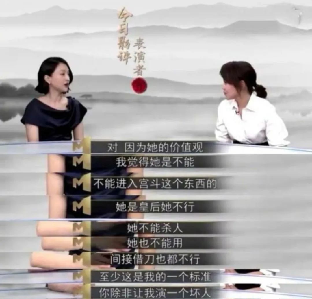 在《表演者言》里,周迅对如懿的理解也颇为拧巴。“我觉得她是不能进入宫斗这个东西的。她是皇后她不行,她不能杀人,她也不能用间接借刀(杀人)也不行。至少这是我的一个标准,你除非让我演一个坏人。”咱都三金影后了,怎么还用“好人”和“坏人”给一个角色贴标签啊。