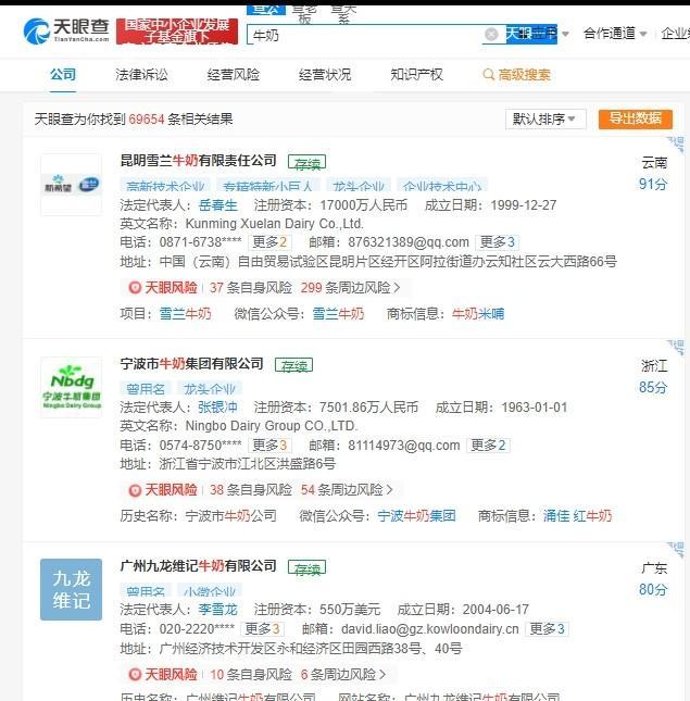 不光是蒙牛、伊利、光明等乳企在争夺这一领域,其他大大小小的鲜奶企业也不在少数。根据天眼查数据显示,截至2024年3月22日,国内现存鲜奶相关企业6.85万家。