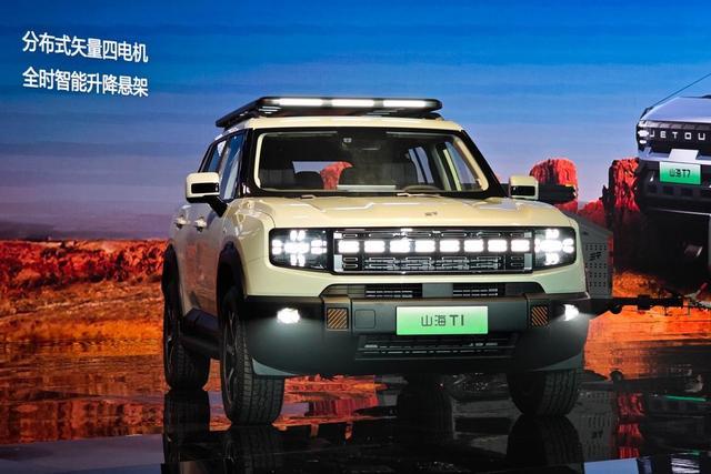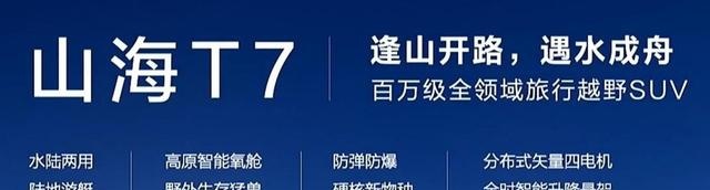 此次所公布的山海T7未展示实车,而仅展示在大屏幕之中。这款车应该会是此前亮相的捷途T-3的量产版。它采用了分布式矢量四电机,全时智能升降悬架,能够实现水陆两用,可见这款车型在性能上也要全面的对标仰望U8。