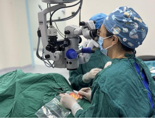 李冬梅教授表示,本次手术难点在于,患者此前多次手术,植入过异体巩膜、异种脱细胞真皮等材料,均因材料吸收后复发,同时多次手术的炎症刺激及组织瘢痕增生,正常下睑解剖关系遭到破坏,各层组织粘连严重。