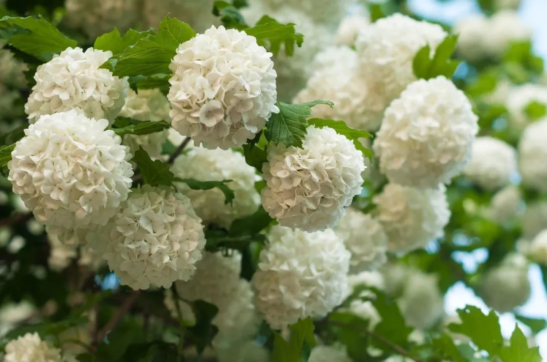 欧洲木绣球在园艺景观方面也是有非常好的表现能力的,适合地栽养护。每年春天的时候就能开出一个个雪球般的花球,它的花刚开的时候是淡绿色的,所以人们叫它“绿豆糕”。等花朵慢慢开出来,就会变成洁白的花球。